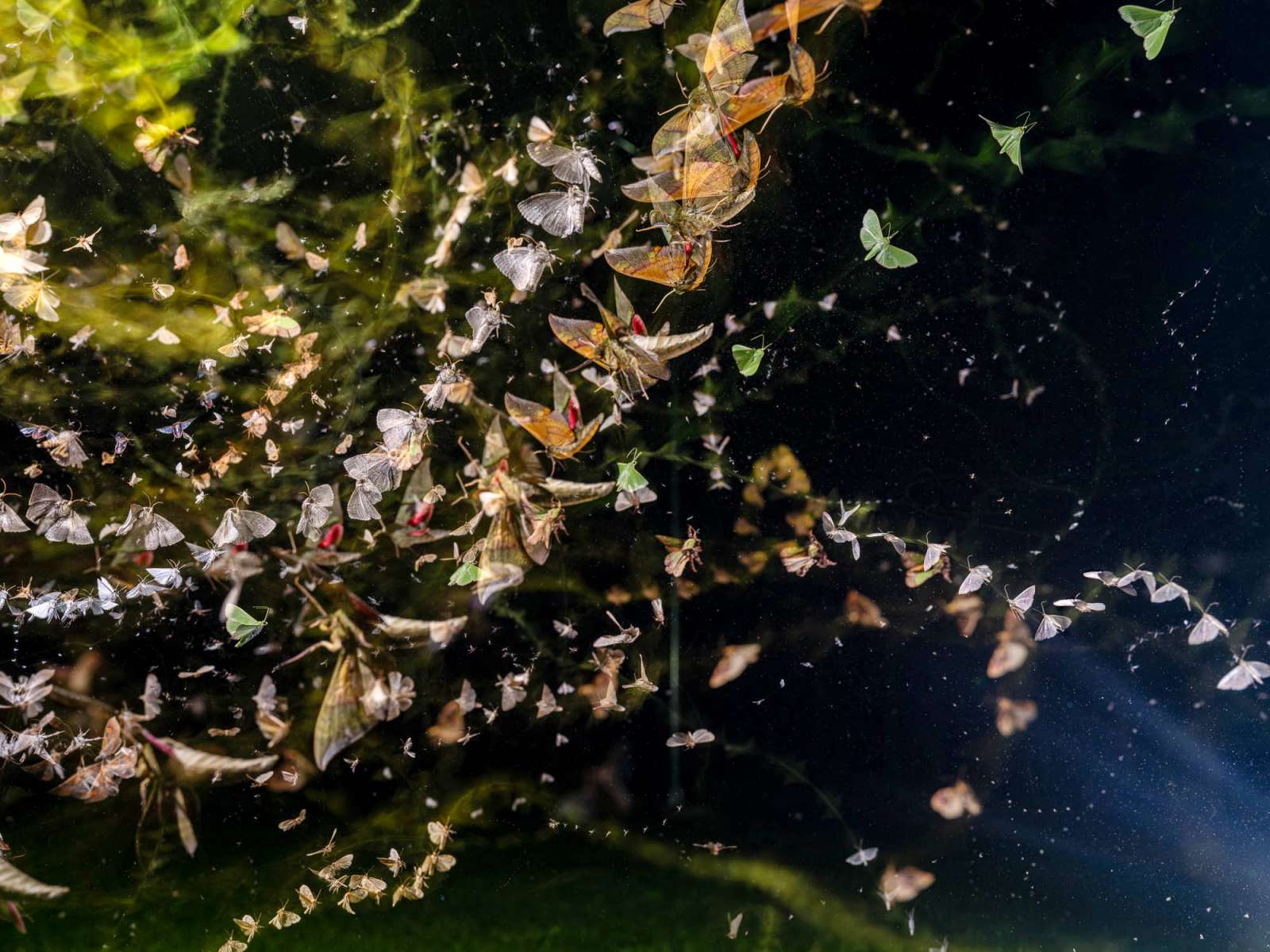 Wild und doch geordnet: Motten fliegen ergonomisch. So zu sehen in der Galerie Gesellschaft in Berlin. Foto: ©schurian.com