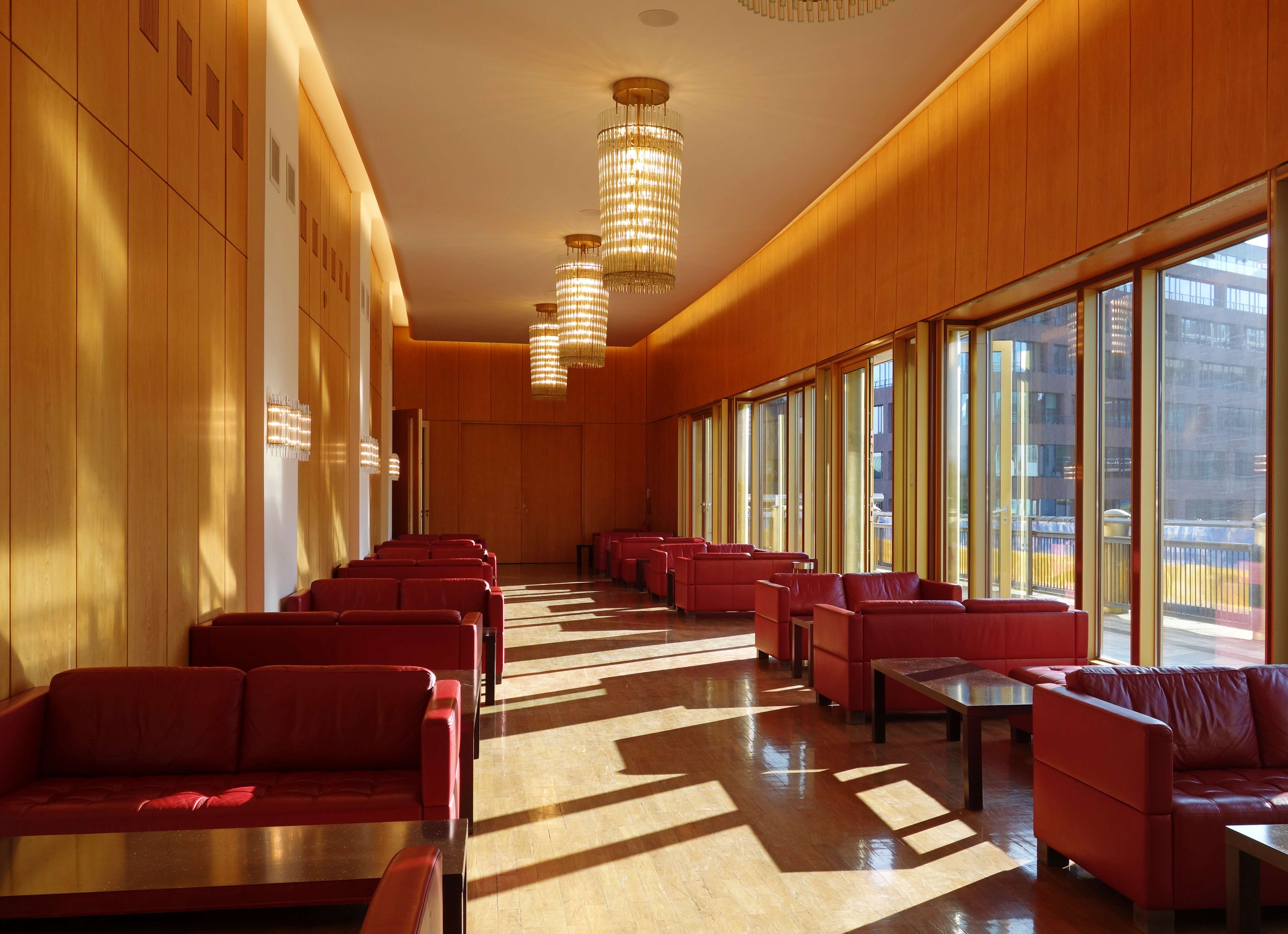 Die von Peter Schmidt gestaltete Stifter-Lounge mit Terrasse ist ein innenarchitektonisches Juwel. Zu sehen im vierten Rang der heutigen Hamburgischen Staatsoper. Foto: Gisela Sonnenburg