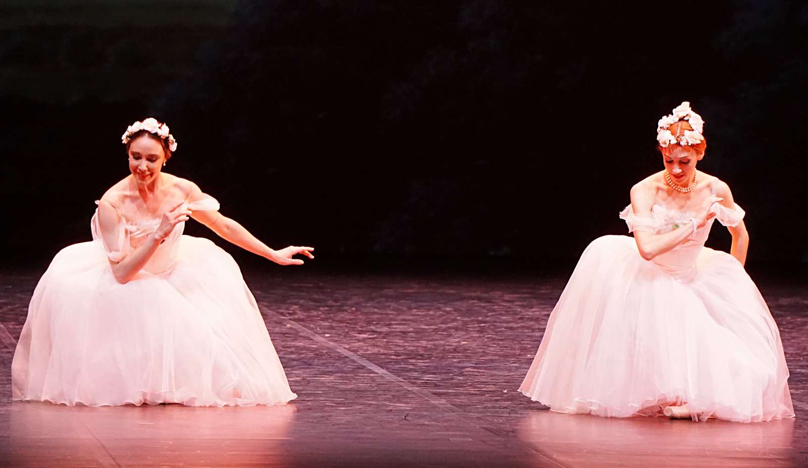 Yolanda Correa (li.) und Ksenia Ovsyanick (re.) im „Pas de Quatre“, dem Gipfeltreffen der romantischen Primaballerinen von Anton Dolin nach Jules Perrot, beim Staatsballett Berlin. Zu sehen in „From Berlin with Love I“. And love comes back! Foto: Gisela Sonnenburg