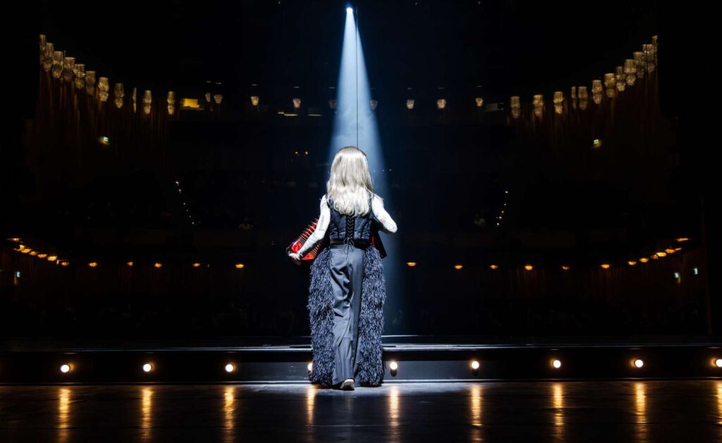 Von rechts kommt das Volk heran, von links treten einzelne Individuen herbei. Sie alle scheinen im fahlen Zwielicht (designed von cube.bz) fast nackig zu sein, aber wenn die Farbe aus den Scheinwerfern dazu kommt, erkennt man Shirts und Shorts, über denen jeweils ein grob fransiger Silberglitterminirock wabert. Das ist nun kein Itsy Bitsy Teenie Weenie Honolulu Strandbikini, aber immerhin: Sexyness wird impliziert. Lederriemchen, die wie von Uniformen entliehen scheinen, durchkreuzen zudem die etwaige Bravheit der Kostüme. Und schwarze Pailletten auf dem Mieder verleihen manchen Tanzenden die Aura der Festlichkeit. High Society spielt sich später im zweiten Teil – der insgesamt deutlich weniger intensiv ist als der erste – verstärkt ab: mit grotesk aufgetürmtem Big Hair (blondiert, was sonst) und mit offen zur Schau getragener Gier.